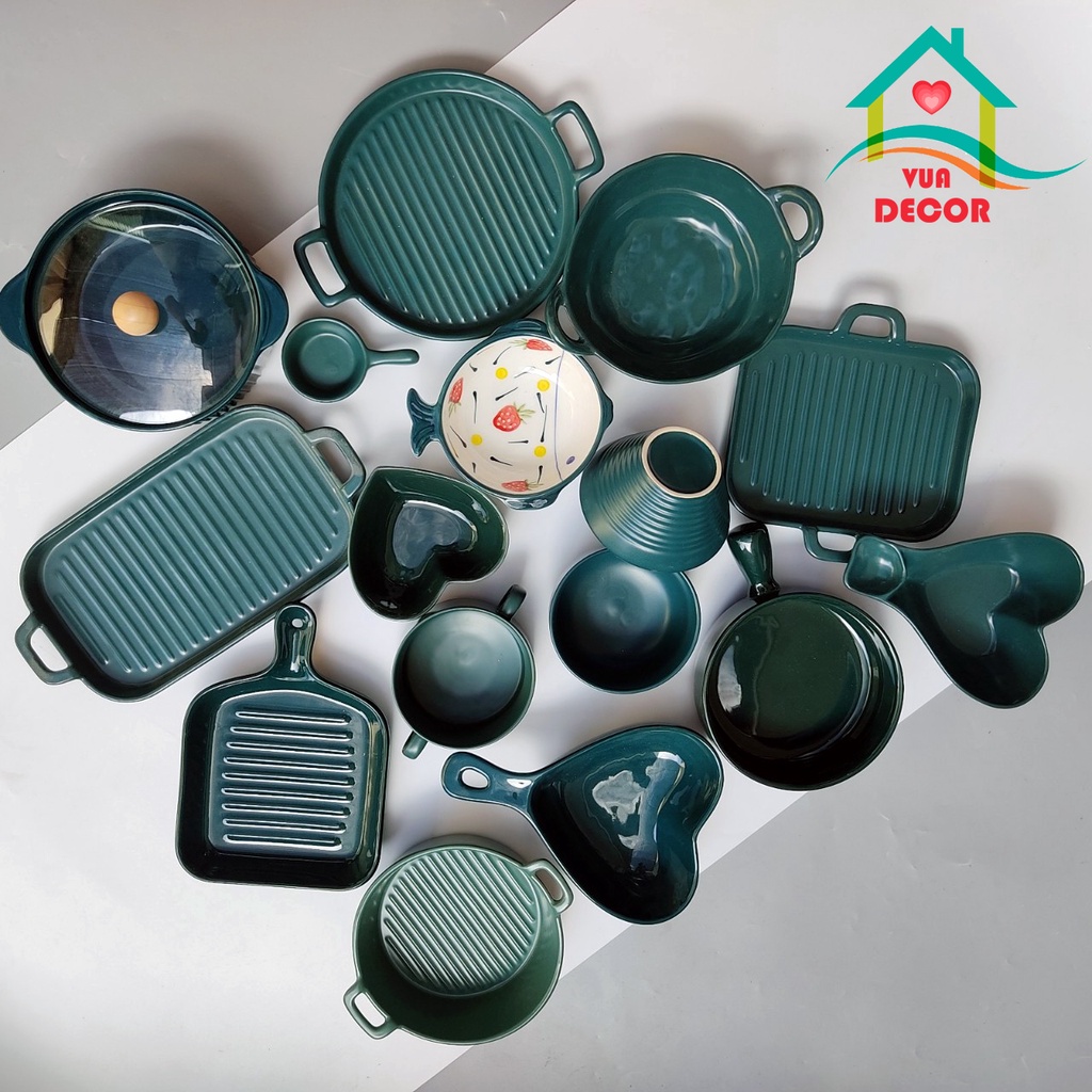 Bát Đĩa Decor Bát Ăn Cơm Bộ Chén Dĩa Sứ Xanh Cổ Vịt Dễ Thương Cute Cao Cấp S05 free ship