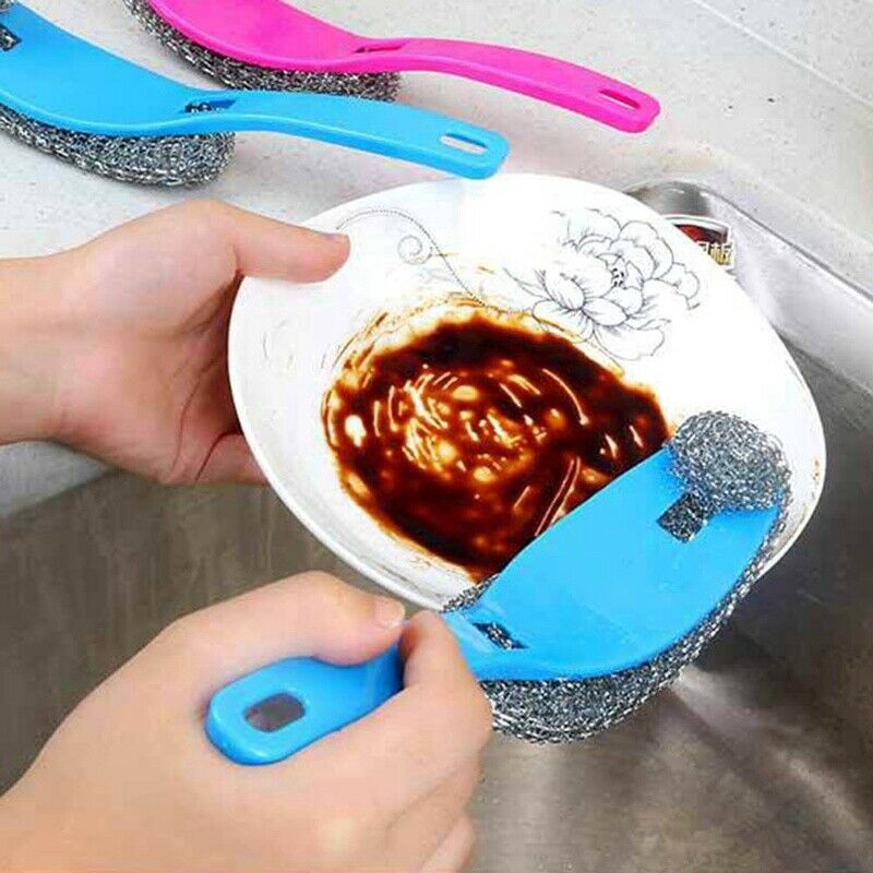 Cọ rửa chén dĩa bằng sợi thép chống dính có tay cầm dài tiện dụng free ship